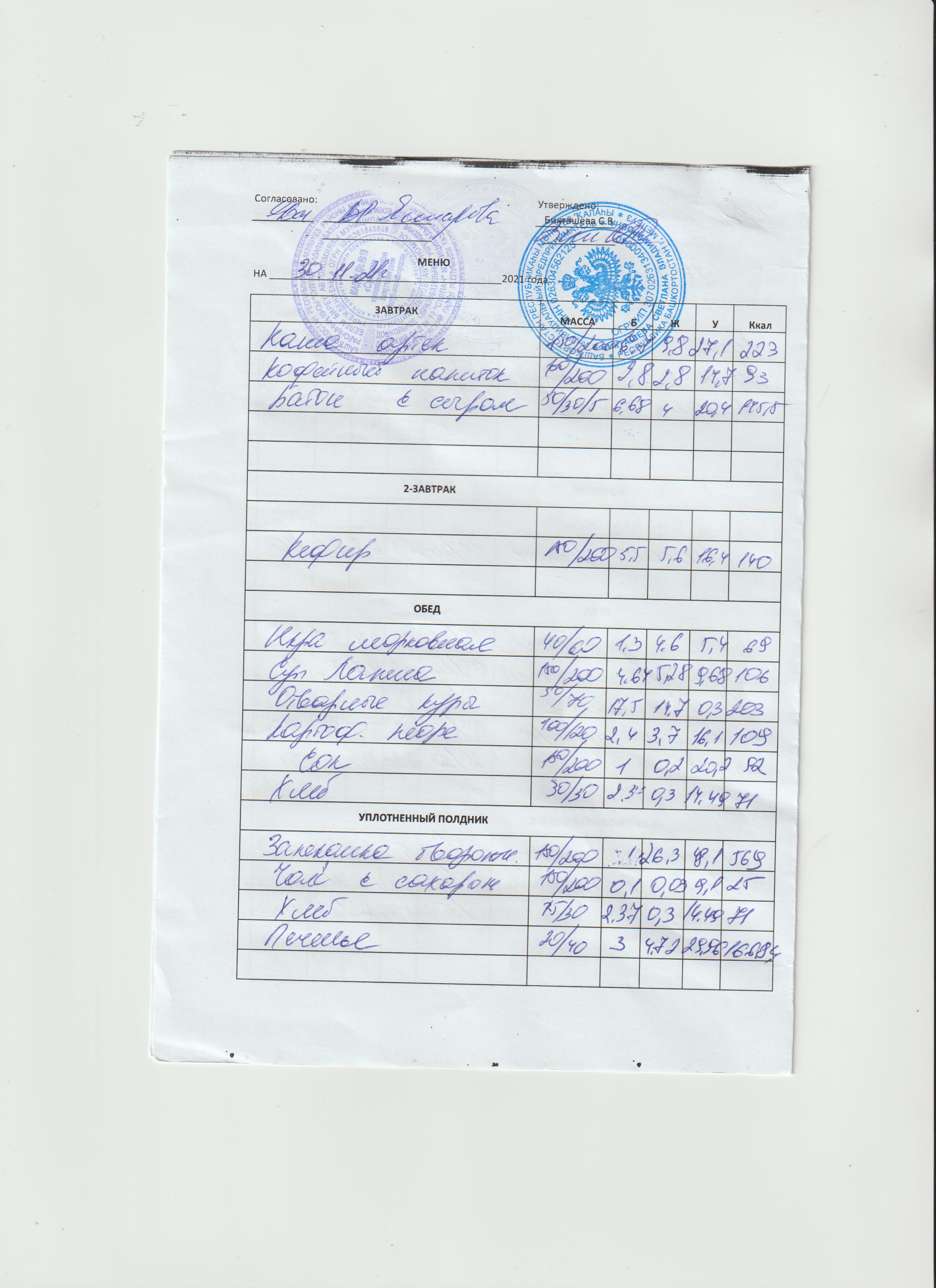 Форма обратной связи по вопросам питания